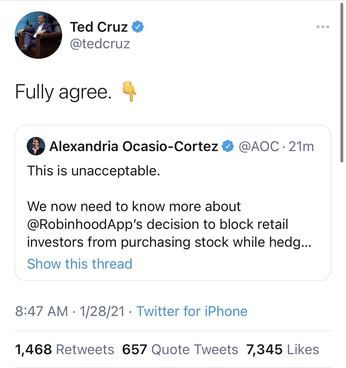 Aoc responded to ted cruz agreeing with her over the gamestop situation on twitter: 'you almost had me murdered'. 1,197,412 likes · 104,588 talking about this. By colby halljan 28th, 2021, 1:23 pm. @aoc you are a liar, he wrote. Ted cruz agrees with aoc. Ted cruz sparred on twitter thursday.