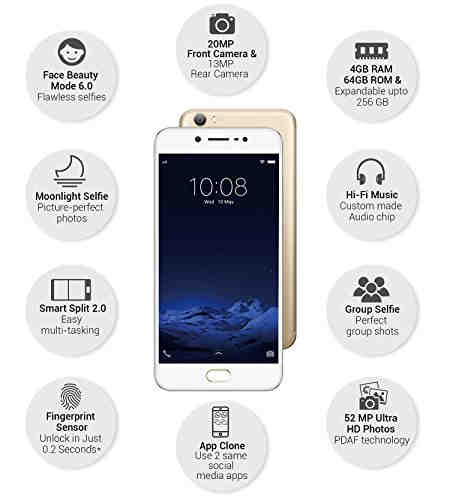 Vivo E5 Model Name , Features 5.5″ Display, Mt6750 Chipset, 13 Mp Primary Camera, 20 Mp Front Camera, 3000 Mah Battery, 32 Gb Storage, 4 Gb Vivo V5.